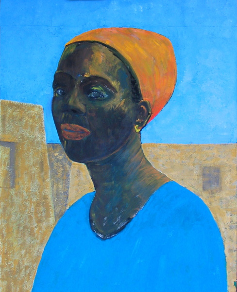 De originele zwart-wit afbeelding kwam voor in reclamemateriaal van "Ben". Een vrouw die door het leven zeer wantrouwend is geworden. Ik heb dat portret één op één nageschilderd. Ik geloof dat het mij gelukt is haar kijk op het leven weer te geven.